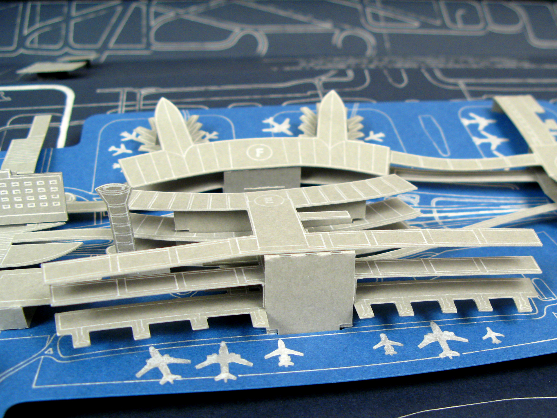 Charles de Gaulle Airport pop-up featuring new terminal. Concept, paper engineering, all art, pre-press and h/a supervision by MM. Produced by French ad Agency.