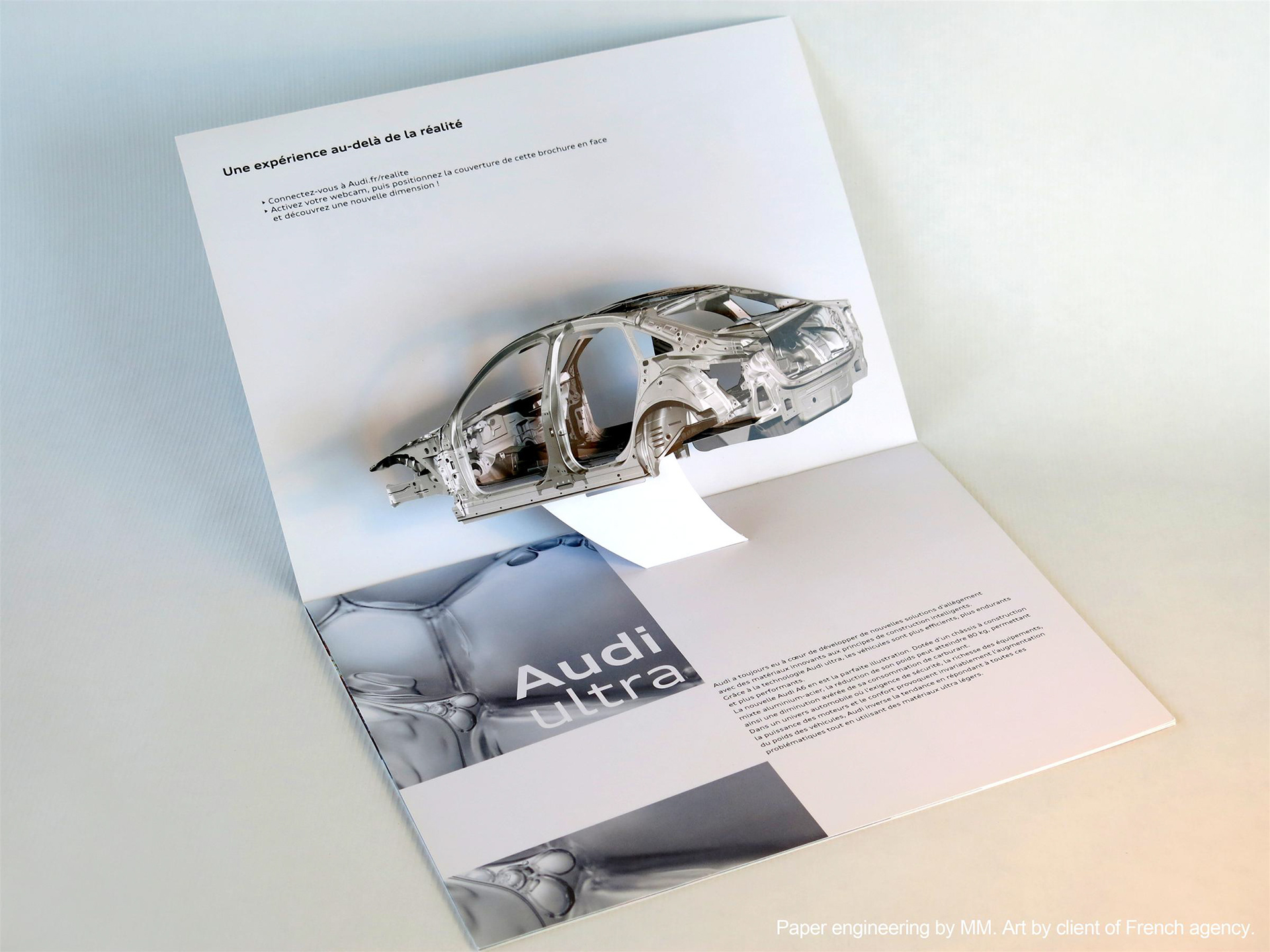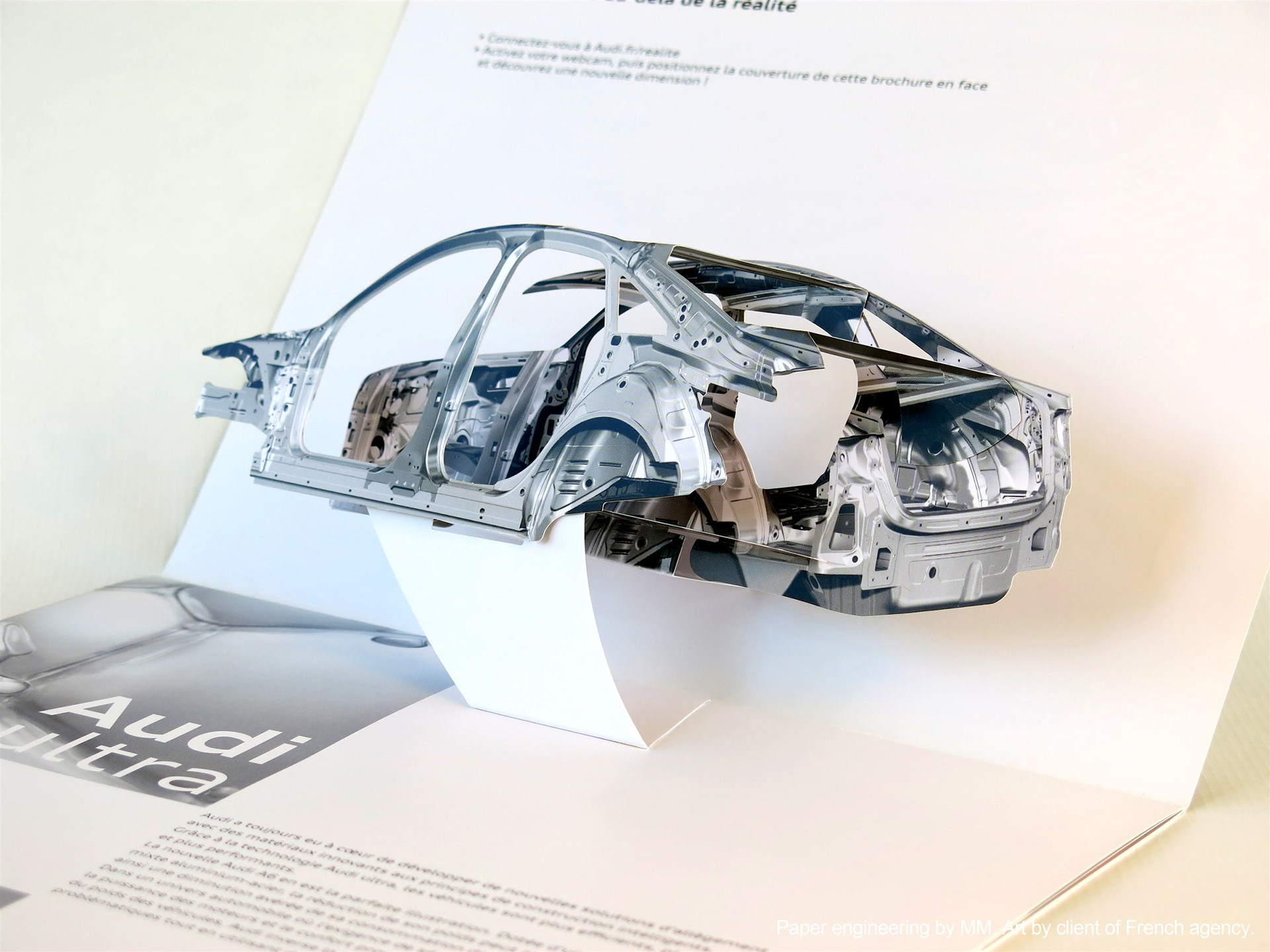 New car frame pop-up insert for the client of French agency. Paper engineering and art manipulation by MM.