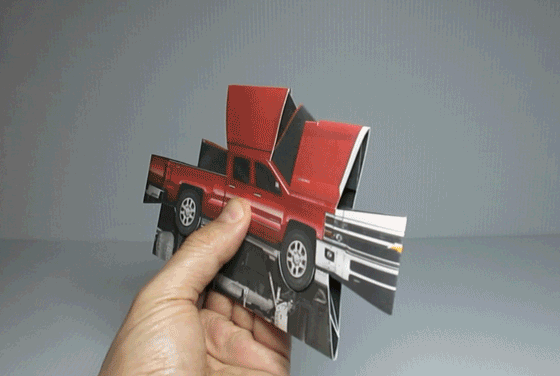Pop-up truck (hand cut mock-up). Concept, paper engineering and art by MM for private client.