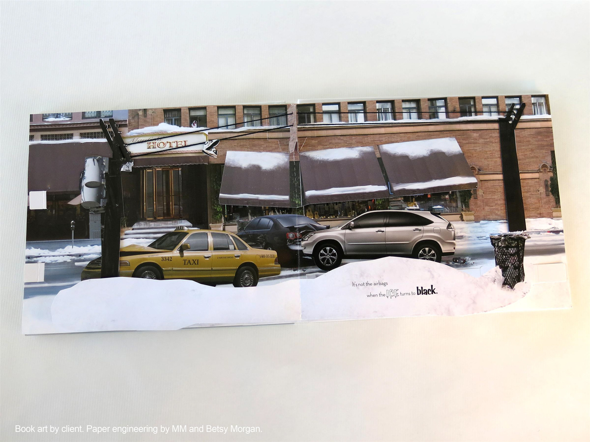 Pop-up book for the client of SG. Paper engineering and art manipulation by MM. Additional design by Betsy Morgan.