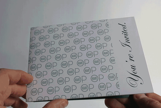 Invitation for the inaugural fund raiser Gala event featuring hand, holding actual size 3D-printed heart of a baby. Concept, paper engineering and art by MM.