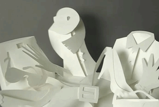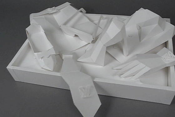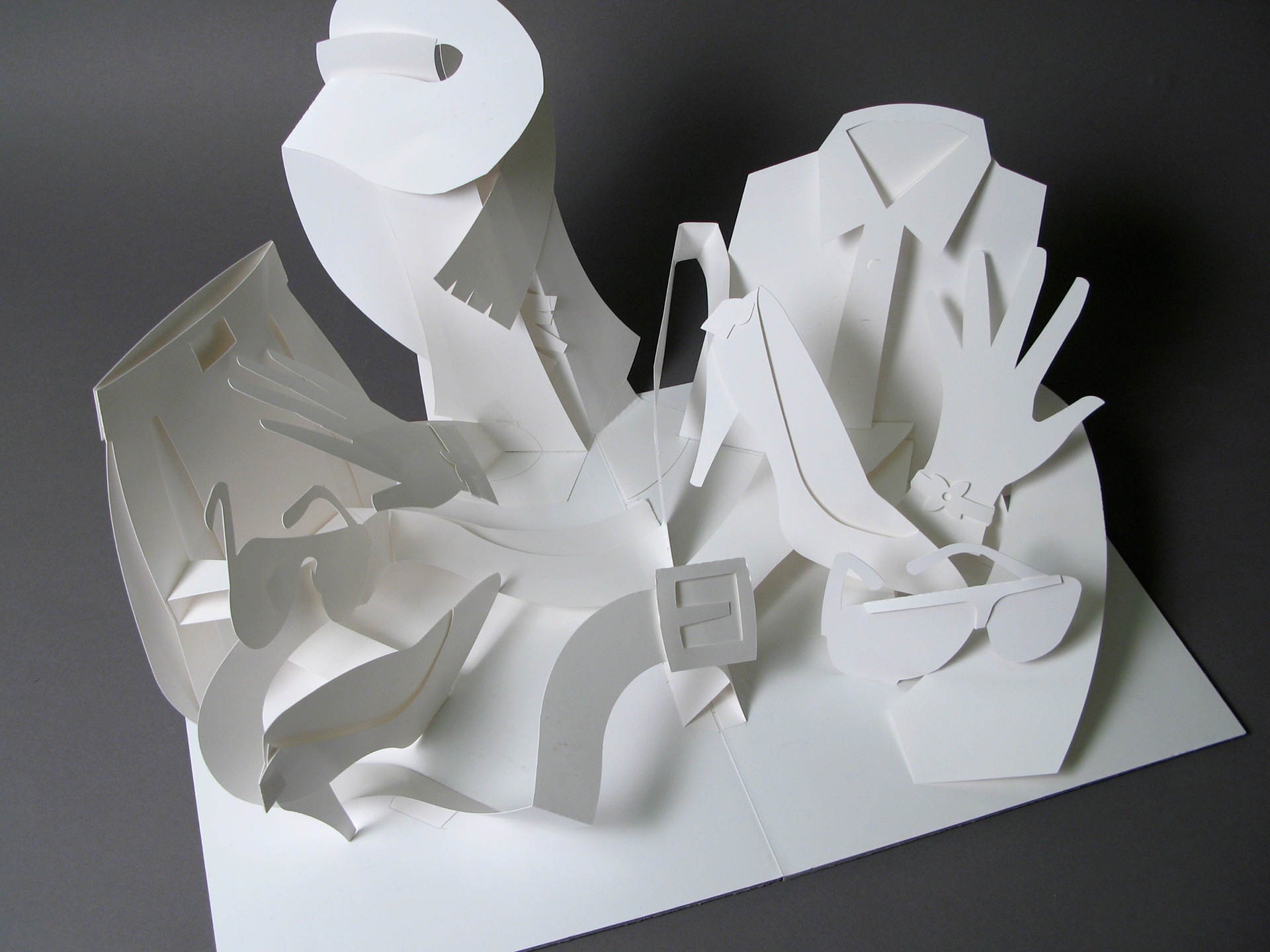 Window display with collapsible elements. Paper engineering by MM for French client.